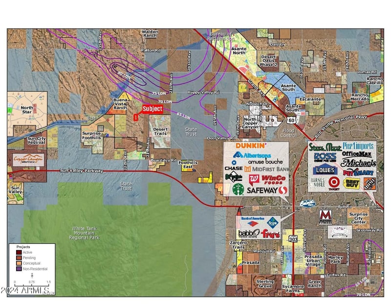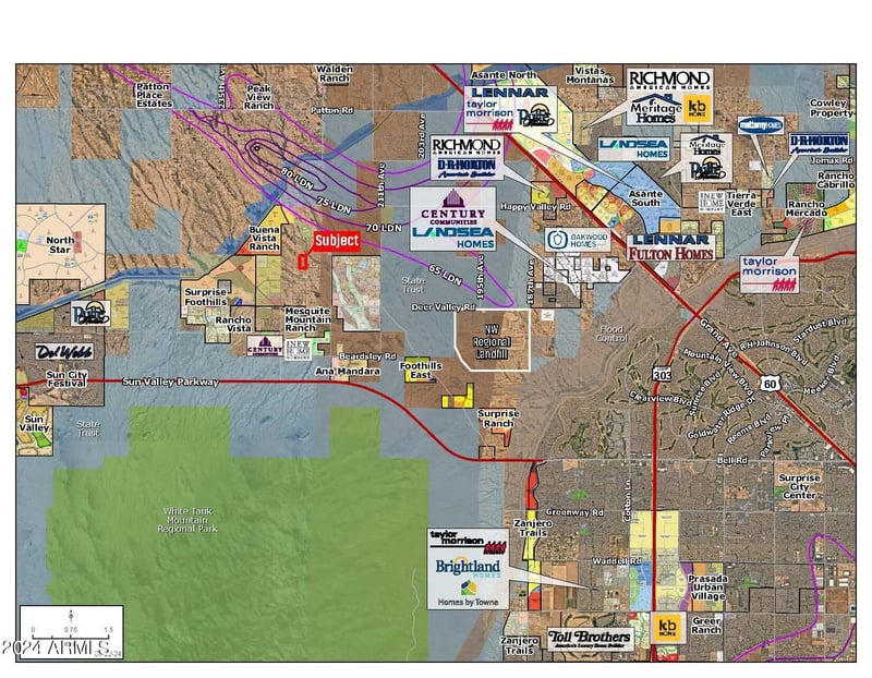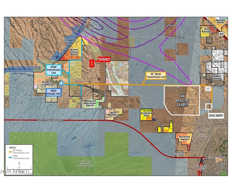 Listing details for 0 223rd Ave #-, Surprise, AZ 85387 : ±19.04 acres available on 223rd Ave & Pinnacle Peak Rd Alignment. Property is within the City of Surprise water and sewer area, line extensions needed to get utilities to the property. Paved access from Sun Valley Pkwy to the property. APS electric needs a line to the property.