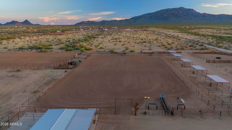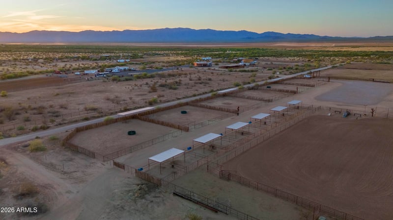 Listing details for 00005 529th Ave #14, Aguila, AZ 85320 : This 5 acre, turn key property is set up and ready to go. Designed with the serious horseman in mind, this property features six 100'x100' turnouts plus twelve 24'x24' pens with shade and automatic water. The roping arena has everything you need to step right into training, roping or running a business. There are covered pens and waters for the steers at the back end of the arena, the automatic chute stays and the ground is flat and meticulously maintained. The connex boxes with shade provide a versatile space for storage, tack or farrier workspace complimented by a concrete patio and large wash rack area. Two full RV hook ups make it easy to accomodate guests, clients or seasonal help. The property is fully fenced with water and power. Whether you're looking to operate, invest or enjoy the Arizona lifestyle, this property is dialed in and ready.