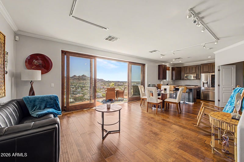 Listing details for 10009 1st Dr, Phoenix, AZ 85021 : Panoramic city and valley views set the tone for this beautifully maintained 2-bedroom, 2.5-bath home with a den/office in a gated community set within the sought-after Central corridor. This two-level layout features both bedrooms downstairs, each offering spectacular valley views, including a spacious primary suite with a walk-in closet. Slate flooring flows throughout the home. Upstairs, the light-filled main living area opens to a private balcony with a half-moon deck for relaxing or entertaining, perfect for morning coffee or evening wind-downs. Enjoy access to a community pool and spa, ideal for relaxing poolside while taking in the surrounding views. Ideally positioned near shopping, dining, and major freeways.