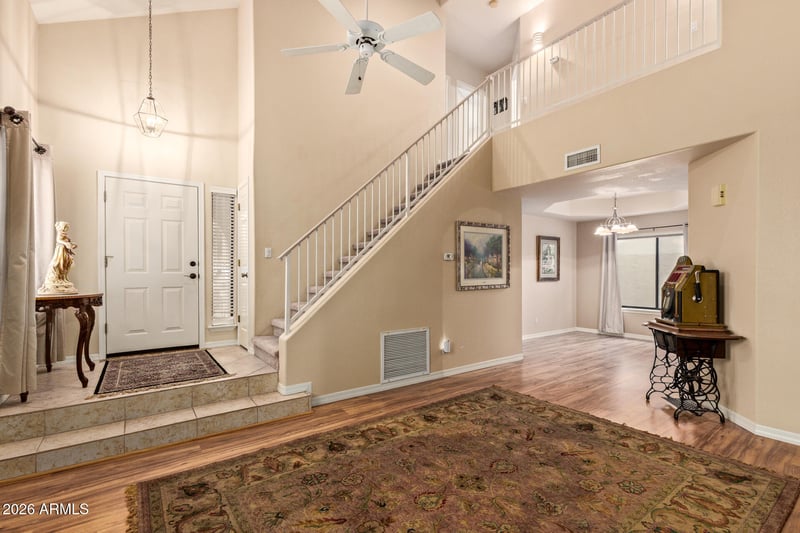 Listing details for 1001 Griswold Rd #34, Phoenix, AZ 85020 : Fantastic opportunity to own this lovely 3-bedroom home on a coveted corner lot! You're greeted by an inviting living room with soaring vaulted ceilings, a soothing palette, and wood-look flooring. Adjacent, the dedicated family room features a cozy fireplace for intimate evenings with loved ones. Culinary adventures await in the well-appointed kitchen, equipped with granite counters, ample wood cabinetry, contemporary track lighting, stainless steel appliances, and a peninsula with a breakfast bar. The main bedroom features plush carpeting, balcony access, an ensuite with dual sinks, and a walk-in closet with mirrored doors. Venture out onto the balcony, offering breathtaking mountain views. The lovely backyard offers a full-length covered patio and lush natural turf. Come see today!
