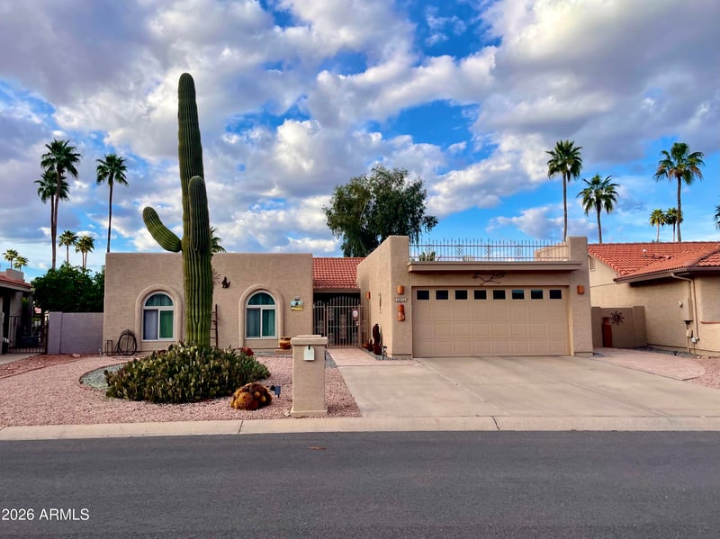 Listing details for 10018 Watford Way, Sun Lakes, AZ 85248 : LAKE VIEWS! REMODELED KITCHEN! Welcome to this popular Alameda model in the vibrant active adult community of Cottonwood in Sun Lakes. Previous owner added 236 sf of office space with an exterior entrance. Secure covered golf cart parking on side behind the gate. Enjoy star gazing on the rooftop deck. Beautiful backyard patio and gazebo to enjoy the lake views and the amazing sunsets. Updates galore. New garage door opener 2026. Full kitchen remodel, gutters, exterior paint & freshly sealed roof in 2025. New HVAC 2020. New mini split, RO system, tankless water heater in 2019. 2018 water softener. Dual paned windows & gate in 2017. Golf, 7 pickle ball & 7 tennis courts, fitness center, 5 pools, restaurants, clubs, & countless social activities all included for one low HOA fee.