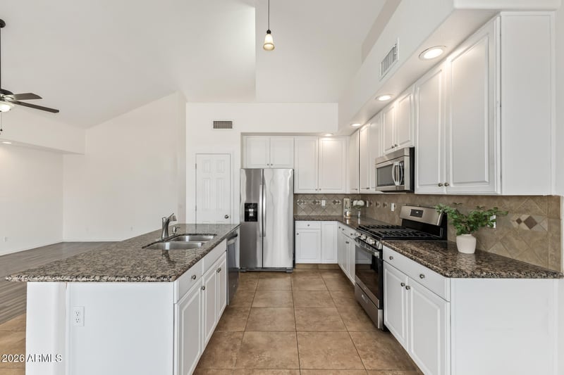 Listing details for 1002 Kelton Ln, Phoenix, AZ 85023 : This charming two-story home w/fantastic mountain views is the one for you! Located right next to open natural space & no neighbors to the East for guaranteed privacy! Explore the bright and airy interior, showcasing wood-look flooring, tile in all the right places, soaring ceilings & a neutral palette. Whip up your signature dishes in the pristine kitchen, equipped w/ample cabinetry, tile backsplash, granite countertops, SS appliances & an island. The tranquil main retreat hosts a mirrored walk-in closet & a full bathroom w/double sinks. The backyard is complete w/a cozy covered patio, plenty of space for outdoor fun & a no-fuss landscape. Enjoy access to various Community amenities, such as walking/biking paths & a children's playground! What's not to love? Make it yours!