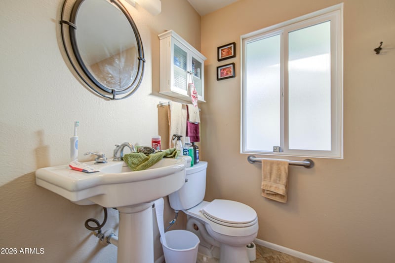 Both bathrooms have been refreshed with modern pedestal sinks. The versatile craft/laundry room with its own private entry has even served as an 3rd bedroom/Casita, offering exceptional flexibility and storage. Enjoy peace of mind with newer Pella windows and a new roof in 2023.