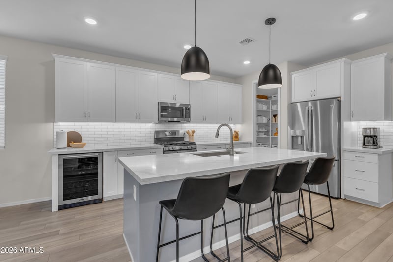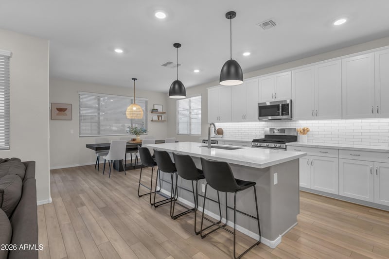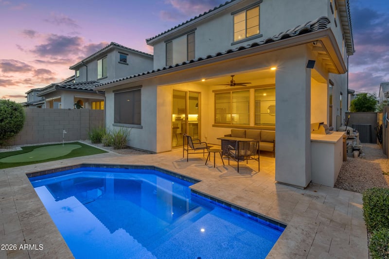 Listing details for 10031 Tillman Ave, Mesa, AZ 85212 : Step into this well cared for home in the sought after Cadence at Gateway community, where comfort and fun come together in a bright and open space. Upstairs you will find four large bedrooms and a cozy loft that is perfect for relaxing, playing, or movie nights. Downstairs offers a flexible room that can be used as a home office, guest room, or hobby space to fit your needs. The heart of the home is the beautiful kitchen, complete with sleek quartz counters, upgraded appliances, and a spacious walk-in pantry that makes storage easy. The kitchen opens to the main living area, creating a warm and inviting place to gather with family and friends. Step outside to your own private backyard retreat, designed for both fun and rest, with a sparkling built-in pool, a patio grill ready for weekend