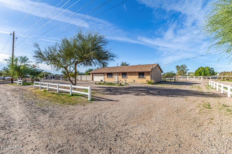 Listing details for 1008 Meridian Rd, Apache Junction, AZ 85120 : Located in the heart of Apache Junction and under county jurisdiction, this 3-bed, 2-bath home sits on over an acre of usable land, offering exceptional space, flexibility, and privacy! This expansive corner lot features 2x6 exterior walls with R-19 insulation for added comfort and energy efficiency. Come inside & fall in love with the open floor plan with ceiling fans and neutral palette that creates a warm, inviting ambiance. The kitchen has honey oak cabinets and built-in appliances. Check out the main bedroom, which provides plush carpet, a well-sized closet, and a private bathroom with a step-in shower. Enjoy mountain views from the vast backyard, complete with a covered patio and storage shed, perfect for outdoor living and endless possibilities. Don't miss this amazing deal!
