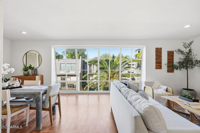 Listing details for 1012 Osborn Rd #E, Phoenix, AZ 85014 : Welcome to effortless Central Phoenix living in the desirable 12th Street & Osborn and Phoenix Country Club corridor. This light-filled condo offers a functional open layout with striking paneled floor-to-ceiling windows that bring in abundant natural light and create a bright, inviting living space. The kitchen flows seamlessly into the main living area, ideal for both everyday living and entertaining. The bedroom is generously sized with ample storage and walk-in closet. Enjoy low-maintenance, gated, condo living with covered parking, community amenities, and mature landscaping. Conveniently located near Downtown, Midtown, the Biltmore area, and major commuter routes—an excellent opportunity for owner-occupants or investors alike.