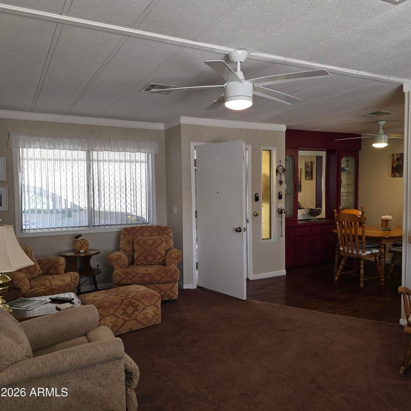 Listing details for 10201 99th Ave #12, Peoria, AZ 85345 : ON LEASED LAND: Welcome home to this 2 bedroom 2 bath split floorplan manufactured home. Step inside to the front room, spacious kitchen, inside laundry. All appliances convey. 2 Primary bedrooms split floorplan. Ac only 6 years old. Rare 1 car garage with enough parking for 3 more vehicles. C Located in highly sought after Sevilla Sol, a 55 plus age restricted community. Community features pool, spa, rec center, billiards, pickleball, dog park, separate RV storage lot.