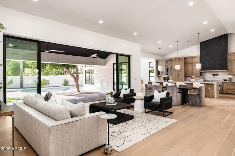 Listing details for 10228 55th Pl, Paradise Valley, AZ 85253 : Fully remodeled with designer finishes throughout, this 5-bedroom, 3-bath Paradise Valley home features stunning Taj Mahal quartzite, custom white oak cabinetry, high-end stainless appliances with wine fridge, new wood flooring, and beautifully updated bathrooms. A dramatic 23-ft sliding glass wall opens to the covered patio, pool, and spa for seamless indoor-outdoor living. The expansive lower level offers a custom wet bar and flexible entertaining space. New HVAC systems, turf landscaping, cool decking, and an epoxy-coated 3-car garage complete this refined retreat.