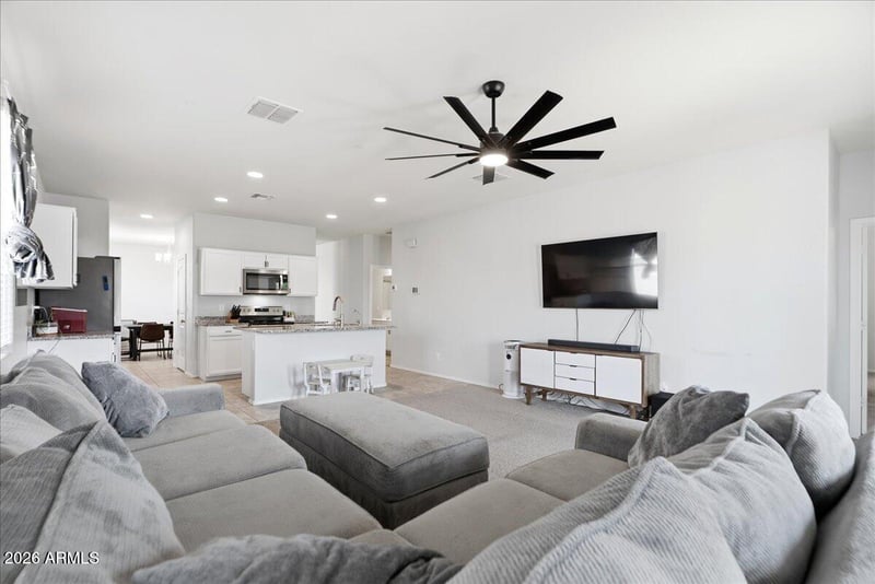 Listing details for 10269 Lupine Ln, Florence, AZ 85132 : Welcome to this SINGLE LEVEL home on a desirable CORNER LOT across from one of the many COMMUNITY PARKS meaning no front neighbors & WIDE OPEN SCENIC VIEWS! Inside you'll find 4 generously sized bedrooms & 2 bathrooms with dual vanities, all thoughtfully laid out in a SPLIT FLOORPLAN for added privacy. Soaring 9ft ceilings & an expansive family room create a bright, open feel perfect for everyday living & entertaining. The kitchen flows into a dining space and features a butler-style area near the pantry for added functionality. The spacious primary suite includes a huge walk-in closet. Enjoy LOW MAINTENANCE desert landscaping, a large covered patio with extended pavers for additional lounging space, RV gate, Citrus Trees, water softener & RO system + Plus SPLASHPAD at the community POOL!