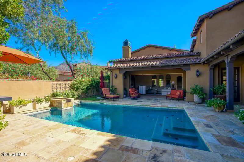 Listing details for 10287 Diamond Rim Dr, Scottsdale, AZ 85255 : Tucked inside the prestigious guard-gated community of Silverleaf Horseshoe Canyon, this residence is designed around a stunning entry courtyard that immediately sets the tone for refined indoor-outdoor living. The home opens to natural open space and mountain views, with multiple covered patios and beautifully curated outdoor areas—including a center courtyard with a stacked-stone fireplace off the great room for additional entertaining. Inside, timeless design meets updated interiors with first-class finishes. Wide-plank wood flooring carries throughout the main living spaces, enhancing the home's warmth and elegance. A light-filled great room with stacked glass doors flows seamlessly to the courtyard, creating an effortless connection between interior comfort and outdoor charm. Opening to natural open space and mountain views, this gem is complemented by multiple covered patios and thoughtfully curated outdoor living areas--including a center courtyard with stacked-stone fireplace off the great room, ideal for both intimate gatherings and entertaining. Inside, timeless design meets updated interiors with first-class finishes throughout. Wide-plank wood flooring flows through the main living spaces, enhancing warmth and sophistication. A light-filled great room with stacked glass doors opens seamlessly to the courtyard, creating an effortless connection and seamless indoor outdoor Arizona living. The kitchen is the heart of the home, featuring a spacious open design with white beamed ceilings, two-tone cabinetry, an oversized eat-in island, and professional-grade Wolf, Sub-Zero, and Viking appliances. Just off the kitchen, the dining room is elevated with coffered ceilings, while custom glass-front wood display cases in the family room add character and craftsmanship. Details throughout wood shutters, solid white doors, elegant iron railings, and unique tile selections showcase the thoughtful design and craftsmanship. With a three-car garage, generous entertaining spaces, and a floorplan that blends luxury with livability, this home epitomizes the Silverleaf lifestyle. Community parks and green spaces are just a short walk away, enhancing the connection to this premier neighborhood.