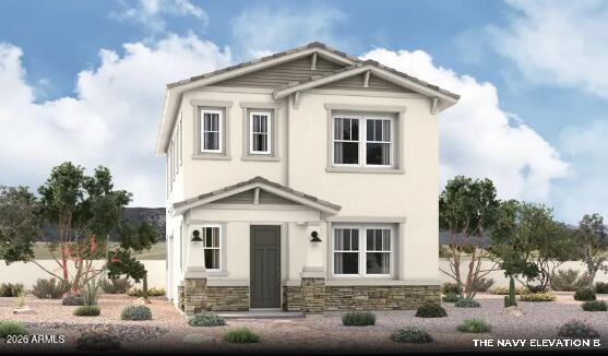 Listing details for 10298 Cave Spring Trl, Apache Junction, AZ 85120 : Welcome to the Navy floor plan--where low maintenance luxury meets thoughtful design and everyday comfort. This spacious 2,090 sq ft home features 3 bedrooms, 2.5 baths, a loft, and 9-foot ceilings on both levels, creating an open and airy feel throughout. The heart of the home is the beautifully designed kitchen with a large island, adjacent great room and dining area, perfect for entertaining or relaxed daily living. The home also includes a gas range, tankless water heater, and soft water loop for added convenience and efficiency. The generously sized primary suite offers a large walk-in closet, while the low-maintenance backyard and covered patio provide easy outdoor living. Located in the highly desirable Blossom Rock community, residents enjoy access to resort-style amenities including a catch-and-release lake, clubhouse, pool, basketball courts, dog parks, playgrounds, and scenic walking trails, offering a lifestyle designed for convenience and connection.