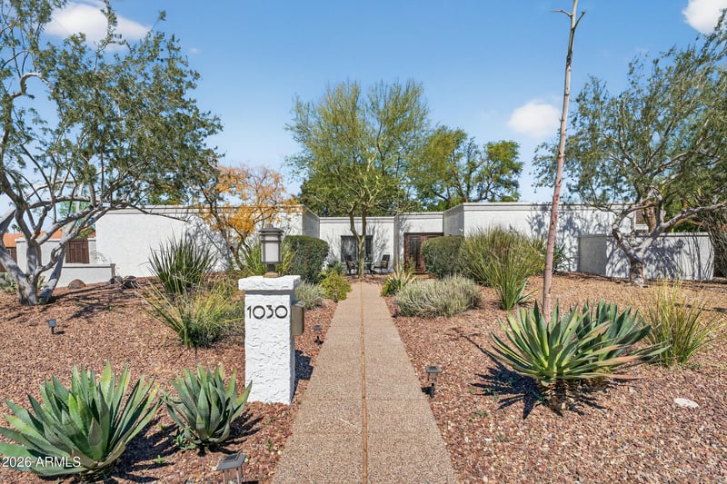 Listing details for 1030 Libra Dr, Tempe, AZ 85283 : Welcome to this beautifully updated Mid-Century Modern home in the highly desirable South Tempe neighborhood, where timeless design meets modern comfort. Ideally located, this home offers exceptional convenience--just 7 minutes to Arizona State University and only 15 minutes to Sky Harbor International Airport, with easy access to major freeways, shopping, dining, and entertainment. From the moment you arrive, the home's fresh exterior paint and inviting curb appeal set the tone. Step through the custom iron designer doors into a thoughtfully designed floor plan offering 4 bedrooms, 2.5 bathrooms, and a 2-car garage. A versatile den with closet provides flexibility to function as a fifth bedroom, private office, or guest suite, perfect for today's evolving lifestyle needs. Inside, the home blends character and warmth with open living spaces designed for both relaxation and entertainment. The living room centers around a charming brick fireplace, creating the perfect place to gather, while the family room flows seamlessly into the dining area and a stunning designer kitchen. The chef's kitchen is truly the heart of the home, featuring a high-end gas cooktop, GE Monogram refrigerator, wall oven, and microwave, rich cherry wood cabinetry, granite countertops, and a beautiful stone backsplash that adds both elegance and texture. Whether hosting guests or enjoying everyday meals, this space offers both style and function. The spacious primary suite serves as a peaceful retreat with a spa-inspired bathroom featuring a classic claw foot soaking tub, a walk-in shower surrounded by elegant granite slabs, and refined finishes throughout. Step outside to a massive backyard designed for Arizona living and entertaining. This outdoor space includes custom seating areas, an extended covered patio, a garden space, grassy play area, RV parking, and additional storage, providing endless possibilities for gatherings, recreation, or quiet evenings under the desert sky. Blending mid-century charm, modern upgrades, and an unbeatable Tempe location, this home offers a rare opportunity to enjoy space, style, and convenience in one exceptional property.