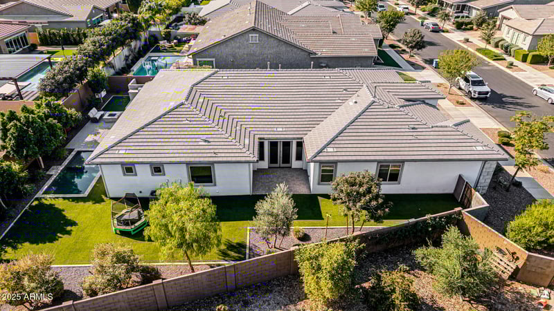 Listing details for 10321 Seismic Ave, Mesa, AZ 85212 : Welcome to your dream home! Introducing this stunning one-story gem offering exceptional living with modern features throughout. Sleek interior impresses with wood-look tile flooring, pre-wired surround sound, ceiling fans, plantation shutters, and abundant natural light that enhances every space. You'll love the versatility of the multiple living areas, including an inviting living room, a formal dining room, and a flexible bonus room. Spacious great room promotes a contemporary and effortless flow, perfect for everyday living and entertaining. Gourmet kitchen is a true showstopper, boasting recessed lighting, a plethora of cabinetry topped with crown moulding, quartz counters, stainless steel appliances, mosaic tile backsplash, a prep island with a breakfast bar, and a breakfast nook. Double doors open to the large primary retreat, offering an elegant ensuite with two vanities, a garden tub, a floor-to-ceiling tiled shower, and a walk-in closet. The 2nd main bedroom is equally impressive, complete with its own sitting room and private bathroom, ideal for guests or multigenerational living. Enjoy year-round fun in the wonderful backyard, complete with a covered patio, built-in BBQ, fire pit, and a swimming pool. Amazing Community amenities await. Don't let this rare find slip by!
