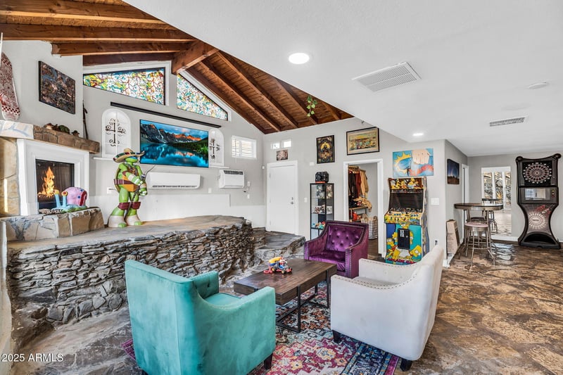 Listing details for 1036 Butler Dr, Phoenix, AZ 85020 : ONE OF A KIND HILLSIDE HOME! This North Central Phoenix home blends Arizona's gorgeous natural elements with modern updates! Main home area is 3bed/2ba with granite counters throughout, updated flooring & cabinetry. This opens up to a massive great room that is built into the hill! Vaulted ceilings with exposed beams & flagstone flooring give this space a distinct cabin feel that no other home has. Use it as a man-cave, your office, another family room, the possibilities are endless! The backyard features a waterfall, paved seating area, cool art murals, & a small trail to lead you up to enjoy the views! Ample parking with 2 car garage, additional 2 spots covered RV parking. Large shed for storage outside! ROOF & AC replaced in 2022!