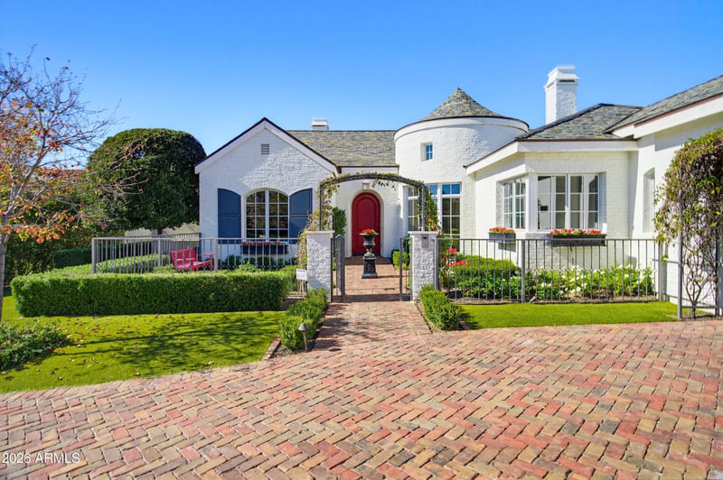 Listing details for 10362 79th Way, Scottsdale, AZ 85258 : This is not just a home, it's a statement property, ideally located between the highly coveted McCormick Ranch and Gainey Ranch neighborhoods, offering the best of both worlds. Set within the intimate seven-home Fox Haven enclave, this extraordinary custom residence was designed and built as the personal home of a luxury home builder. The result is a home that reflects decades of expertise and a true understanding of what discerning buyers value most - timeless architecture, seamless flow, superior craftsmanship, and effortless livability. The home is a refined French-cottage inspired retreat, warm, elegant, and inviting. A gated private courtyard, slate roof, paver walkways, and professionally designed landscaping create a strong sense of arrival, while mature sour orange trees lining the perimeter provide privacy and a rare sense of permanence. Inside, rich wood floors, detailed ceilings with box beams and layered millwork, and soft architectural transitions set a timeless tone. Arched passageways subtly echo classic European design, creating a collected, enduring aesthetic.