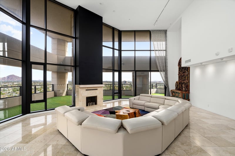 Listing details for 1040 Osborn Rd #1902, Phoenix, AZ 85014 : Unparalleled panoramic views and unforgettable sunsets define this extraordinary 19th-floor penthouse at Crystal Point in the heart of Midtown Phoenix. As day transitions to night, the residence becomes a front-row seat to glowing desert sunsets and the twinkling city lights below. Walls of floor-to-ceiling glass flood the home with natural light by day and open effortlessly to multiple expansive patios, each offering a unique vantage point of the Phoenix skyline, the lush fairways of the Phoenix Country Club, Camelback Mountain, Piestewa Peak, the Superstition Mountains, and beyond. Designed for elevated living and refined entertaining, the highly coveted Tiffany floor plan seamlessly blends indoor and outdoor spaces. A spacious chef's kitchen overlooks the grand great room, while wide gallery-style hallways and abundant wall space create the perfect setting for a curated art collection. Glass doors invite the outdoors in, allowing sunset hues and evening breezes to become part of everyday living. Two luxurious primary suites provide serene retreats with spa-like bathrooms, while a versatile office easily functions as a third bedroom. The thoughtfully designed split floor plan offers privacy, flexibility, and a true lock-and-leave lifestyle without compromise. Ideally located with effortless access to Downtown Phoenix, Sky Harbor International Airport, the Phoenix Country Club, and the Arizona Biltmore, Crystal Point offers full-service luxury living with 24-hour guard-gated security, concierge services, an Olympic-size lap pool, state-of-the-art fitness center.