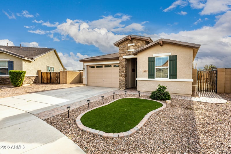 Listing details for 10415 Chickasaw St, Tolleson, AZ 85353 : What a RARE find in Caballo Crossing! Sits on a large pie-shaped lot, this beautiful home offers 4 beds, 3 baths, 2-car garage, RV gate, & a low-care landscape. Discover a seamlessly flowing layout, ideal for everyday living & entertaining! Natural light filled the inviting interior, complemented by a designer palette and wood-look flooring t/out. The impressive kitchen boasts SS appliances, granite counters, mosaic tile backsplash, recessed & pendant lights, a pantry, espresso cabinets, and an island w/breakfast bar. Main bedroom has an ensuite with dual sinks, separate tub/shower, & a walk-in closet. Enjoy the RESORT-STYLE backyard oasis! Featuring a covered patio, well-laid pavers, fire pit, artificial turf, string lights, two Pergolas, play area, and a sparkling fenced pool. Just WOW!