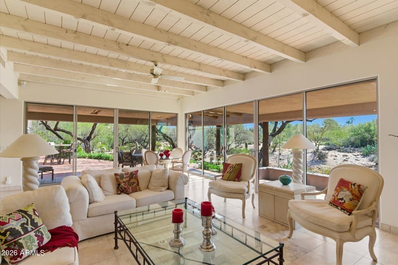 Listing details for 1042 Boulder Dr, Carefree, AZ 85377 : One of a kind- Rare Opportunity! Spacious-double customized home- Entertainer's Dream. Flexible floorplan-rooms open to Spectacular desert. Ideal Multi-Generational Home. Tremendous Beamed Great Room with corner of glass - Terrific Indoor-Outdoor living. Ultimate wine room & unique wet bar. Two kitchens, one with Viking appliances. Striking granite counters, also Butler's coffee bar. Quality cabinetry & doors throughout. Sun filled interiors-Views in every direction. Southwestern family room-distinctive fireplace & overlooking spectacular outdoors-patios, pool & spa. Spacious den/office and exercise room-TURNKEY! Most furnishings & art included. New roof-2023. Located within The Boulders-fabulous Resort & Golfing community. Membership optional. Home shows Exceptional Pride of Ownership.