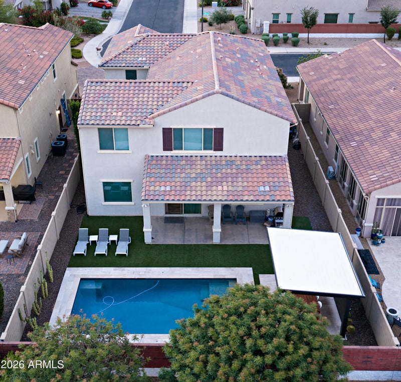 Listing details for 1042 Ladbroke Way, Gilbert, AZ 85297 : Welcome to this beautifully designed 4-bedroom, 3.5-bath home with a loft and 3-car tandem garage, located in the desirable Kensington Estates. The interior features an airy, open layout with soaring ceilings and a seamless flow between the main living spaces--ideal for both relaxed living and entertaining. The kitchen stands out with a large quartz island, GE Café stainless steel appliances, gas cooktop, statement vent hood, rich espresso cabinetry, and pantry that offers plenty of storage. Upstairs, the spacious primary suite provides a true retreat with its own sitting area, a spa-like bathroom with an extended walk-in shower, dual vanities, and an oversized walk-in closet. Step outside to a backyard built for enjoying Arizona living--complete with a pool, covered patio, expansive entertaining space, and a side courtyard for added charm and flexibility. Situated within top-rated Chandler schools and close to everything you need, this home offers both comfort and style in one exceptional package.