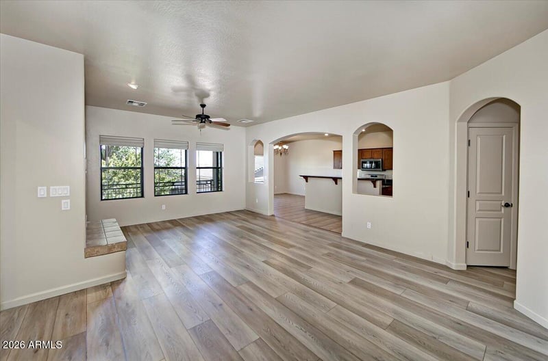 Listing details for 1042 Louie St, Prescott, AZ 86301 : Move-in-ready and beautifully maintained, this home features an open floor plan, newer luxury vinyl plank flooring, and custom window coverings. The spacious living room with a cozy gas fireplace flows into a well-appointed kitchen with granite countertops, stainless steel appliances, and a walk-in pantry--perfect for home chefs. Enjoy indoor-outdoor living with a generous dining room that opens to a private patio. The split floor plan offers a serene primary suite with dual sinks, a tub/shower combo, and a large walk-in closet. Two additional bedrooms share a full bath, and the laundry room includes a washer and dryer. An oversized two-car garage with built-in shelving adds great storage. Located across from green space and a park, this home offers Granite Mountain views and added privacy.