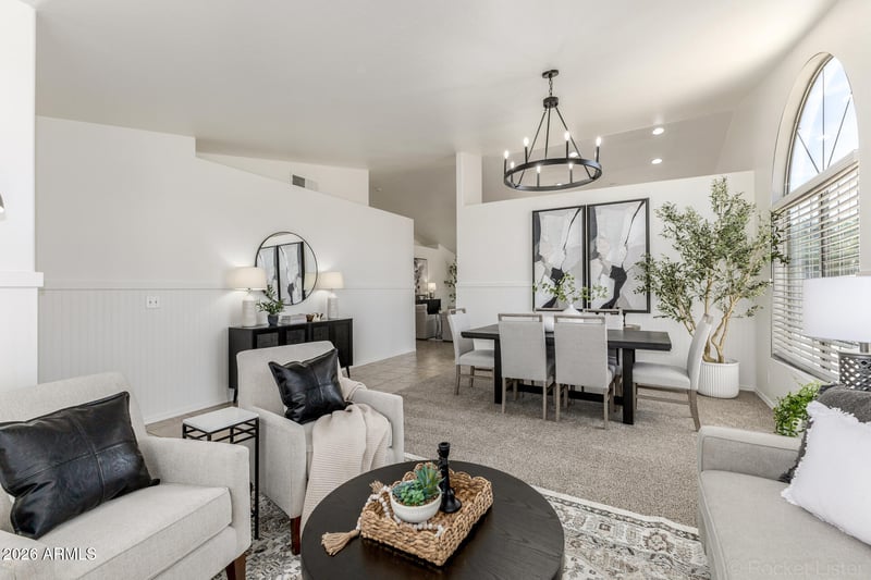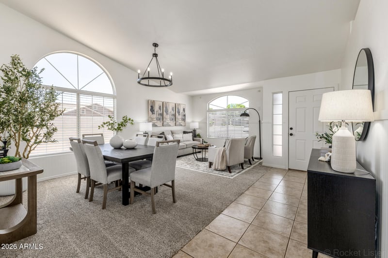 Listing details for 10425 Carmel Ave, Mesa, AZ 85208 : Positioned on a desirable corner lot with over 8,100 sq ft and no neighbors behind, this beautifully updated home offers privacy, space, and everyday comfort in a highly convenient location. Featuring over 1,800 sq ft, this 4-bedroom home offers a flexible and functional layout with a separate front living space perfect for a home office, playroom, or additional lounge, along with an open-concept kitchen and family room designed for gathering and connection. The kitchen is both warm and practical, showcasing a butcher block island, double oven, stainless steel appliances, and ample room to cook and entertain. All new interior paint and brand new carpet, combined with wood-look blinds throughout, create a clean, inviting, and truly move-in ready feel.