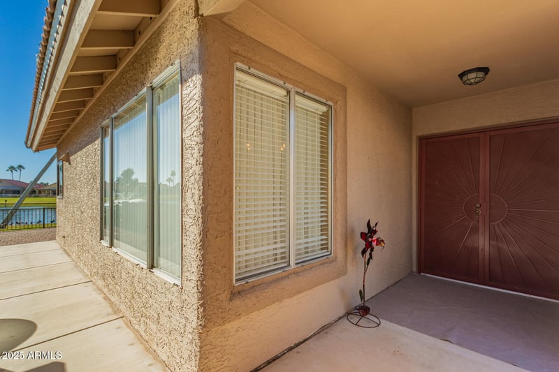 Listing details for 10439 Sunnydale Dr, Sun Lakes, AZ 85248 : WATER FRONT LOT! Welcome to the Kachina floor plan featuring 2 bedrooms, 2 bathrooms, and a separate den/office. This home offers both functionality and comfort with a spacious living room and dining room. The kitchen boasts ample cabinet space, and eat in kitchen. The generous primary suite includes a walk-in closet and a bath with dual sinks, a soaking tub, and a separate walk-in shower. Additional features include a 2-car garage that is extended for a golf cart and plenty of storage. Step outside to a covered patio an ideal setting for relaxing or entertaining while enjoying the stunning water views. A MUST SEE!