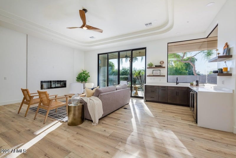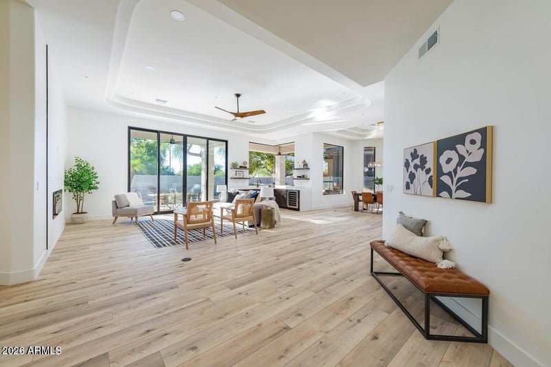Listing details for 10490 110th Pl, Scottsdale, AZ 85259 : Stunning fully remodeled home in gated Rancho Verde, A RARE opportunity to own at a price below today's build and finish costs. Open-concept design built for entertaining features a chef's kitchen with quartz countertops, Thermador appliances, designer lighting, oversized seating island, and a striking double waterfall quartz bar. The spacious great room flows into a bright dining area and living space. The primary suite offers a spa-style bath with double vanity, soaking tub, elegant chandelier, and large walk-in shower. Three additional bedrooms include a second en-suite ideal for guests or multigenerational living. A 12'x10' slider opens to a private backyard with saltwater pool, spa, putting green, gas fire pit, and electronic shades e for seamless indoor-outdoor living!