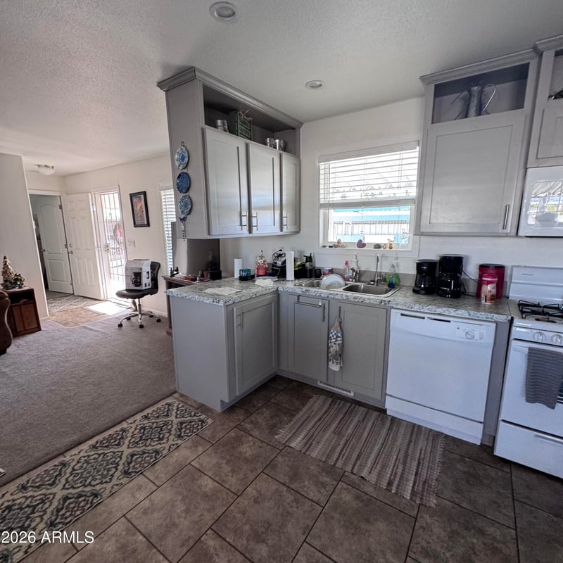 Additional highlights include a backyard storage shed, covered parking, a water softener, and a reverse-osmosis drinking water system. The functional floor plan offers flexibility for full-time living or a seasonal retreat. Ideally located in Apache Junction with convenient access to shopping, dining, and abundant outdoor recreation, including the stunning nearby Superstition Mountains.