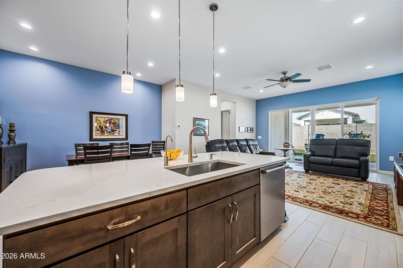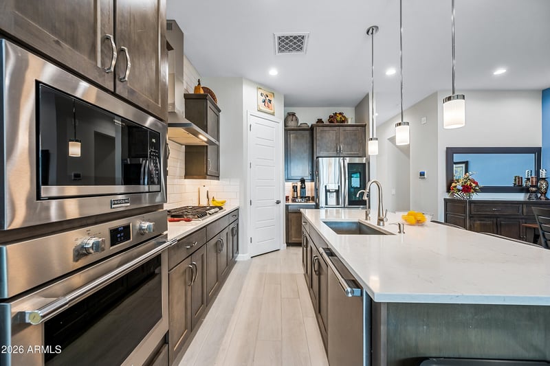 Listing details for 10544 Harmony Ln, Peoria, AZ 85382 : Attention seller offering up to 10K closing costs/buydown allowance Welcome to this modern Dr Horton home for sale in the desirable Camino a Lago community in Peoria offering 4 bedrooms, 3 bathrooms, and 2,120 square feet of thoughtfully designed living space. Ideally located across from a neighborhood desert garden, this home combines privacy, views, and low-maintenance living. This single-story Peoria house features all tile flooring, ceiling fans throughout, and a spacious open-concept great room, perfect for entertaining or everyday comfort. The gourmet kitchen includes quartz countertops, a cooktop stove, wall oven, and a sleek stainless steel range hood--all seamlessly blending style and function for the home chef. Washer/Dryer and Upgraded refrigerator included. Enjoy true Arizona indoor-outdoor living with a stunning 4-panel sliding glass door that opens to a covered patio perfect for relaxing or dining outdoors. Additional upgrades include attractive shutters, a garage with a sealed epoxy floor, and a clean, modern design throughout. The primary shower is luxurious and spacious with a bench. Located near shopping, dining, and outdoor recreation, this move-in ready Peoria AZ home offers style, functionality, and a prime location. Don't miss this opportunity to own a modern home in Camino a Lago.