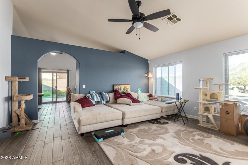 Listing details for 10620 Caballero St, Mesa, AZ 85207 : Welcome to this charming home in Superstition Heights! Sits on a corner lot, it offers 3 beds, 2 baths, & a 2-car garage. The inviting interior features vaulted ceilings, tons of natural light, a designer palette, wood-look floors in common areas, and soft carpet in bedrooms. You'll love the large formal living room, perfect for receiving guests! The eat-in kitchen boasts SS appliances, a walk-in pantry, two-tone cabinetry, a breakfast bar, and sliding doors to the back. Enter the spacious main bedroom to find a walk-in closet and a barn door that opens to the ensuite with dual sinks & a tiled shower. The perfectly sized backyard, with a covered patio and storage shed, is the ideal spot for a fun gathering! With your creative ideas, you can make it a complete outdoor oasis. Make it yours!