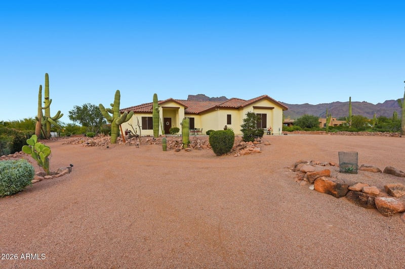 Listing details for 1067 Trigger Ct, Apache Junction, AZ 85119 : Welcome to 1067 S Trigger CT, where desert beauty meets refined living in the heart of Apache Junction. Tucked away off a low traffic street this exceptional property offers breathtaking views of the Superstition Mountains, open skies, and the kind of tranquility that makes Arizona living so desirable. An oversized RV garage with additional RV hookups, massive amounts of storage, separate 2 car garage, and additional power for an EV station as well. Step inside to discover a thoughtfully designed layout filled with natural light, spacious living areas, and seamless indoor-outdoor flow. Whether you're entertaining guests or enjoying a quiet evening at home, the atmosphere is warm, inviting, and effortlessly comfortable. Open kitchen concept, ideal for gathering, this smart home is all set up for creating and connecting! Outside, the property truly shines. Enjoy stunning sunrises and unforgettable desert sunsets with ample space to relax, entertain, or customize your own private oasis. Custom built infinity pool in 2021 with rockslide & waterfall, interior benches, and the mountains as your backdrop, every day feels like a retreat. There is a large outdoor area ideal for entertaining, celebrations, gatherings or weddings & don't forget, this property is NOT in an HOA. Conveniently located near outdoor recreation, hiking trails, lakes, dining, and shopping yet far enough away to enjoy peace and privacy this home offers the perfect balance of lifestyle and location. A rare opportunity to own a slice of Arizona beauty this is more than a home, it's a way of life.