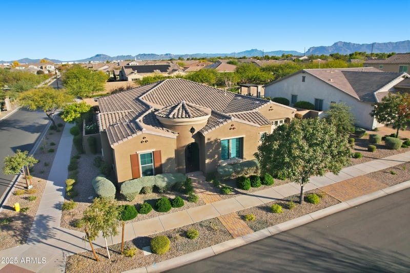 Listing details for 10702 Lumiere Ave, Mesa, AZ 85212 : This spacious 3,282 sq ft home sits on a premium 1/3-acre homesite with no rear neighbor & offers 4 bdrms, a flex space, & 3 full baths. The split floorplan features an open-concept design enhanced by coffered ceilings & a chef's kitchen with modern appliances, an oversized island with abundant prep space, & a convenient work tech station ideal for homework, computer sharing, or gaming. Multi-slide doors in the greatroom open to a sophisticated poolside retreat showcasing a resort-style heated/chilled pool with three fountains, Jacuzzi jets along the bench seating, a raised deck fire pit, & a pergola-covered patio anchored in travertine. The generous primary suite provides a spa-like escape with a walk-in shower, Roman tub, & dual vanities, including a dedicated makeup station. From the moment you arrive, it's clear this home has been thoughtfully designed and impeccably cared for, offering both everyday comfort and elevated living. The flexible floorplan allows the home to adapt effortlessly to changing needs, with four bedrooms, three baths, a dedicated work tech station just off the breakfast nook providing a convenient hub for homework, computer sharing, or gaming, and a versatile flex room that works equally well as a media space, home gym, or secondary lounge. Coffered ceilings in the entryway, dining room, and primary suite add architectural presence, while wood-look tile flooring and plantation shutters bring warmth and cohesion throughout the home. At the center of the home, the gourmet kitchen is both striking and functional anchored by an oversized island designed for gathering, entertaining, and everyday connection. Deep-tone maple cabinetry, highly upgraded granite countertops, stainless steel appliances, an electric cooktop with a gas line already in place for future conversion, a butler's pantry, and a spacious walk-in pantry create a kitchen that truly supports both hosting and daily life. The refrigerator and wine refrigerator are included, making the home move-in ready. The kitchen flows seamlessly into the great room, where expansive multi-slide glass doors blur the line between indoors and out. The primary suite is generously scaled and thoughtfully arranged to feel like a true retreat, featuring a spa-inspired bath with dual vanities, including a dedicated makeup station, a Roman soaking tub, and a walk-in shower. Secondary bedrooms are well spaced for privacy and comfort, offering walk-in closets, an often-overlooked luxury that adds everyday convenience. What truly sets this property apart is the outdoor living experience. Set on a premium lot with no rear neighbor, the backyard far exceeds its competition and feels like a private resort. Travertine decking anchors the space, while a pergola-covered patio creates a shaded outdoor living room ideal for dining, relaxing, or entertaining. The backyard unfolds into a private oasis featuring a raised deck fire pit and seating area, lush artificial turf, and a sparkling pool with a variable speed pump that heats and chills the pool, an in-floor cleaning system, three fountains and Jacuzzi jets integrated into the bench seating space. A wide, gated side yard with natural grass offers the perfect space for a dog run and includes a large storage shed, an uncommon and highly functional bonus. The 3-car garage has epoxy floors, 2-ton mini split, a service door, and overhead storage racks. Additional highlights include a thoughtfully upgraded courtyard gate with electric/manual locking, an electric patio shade, WiFi thermostat and irrigation timer, upgraded side gate lock, new hot water heater, and fresh exterior paint including interior block walls. The washer, dryer, custom wood shelving in the living room and office, and security cameras all convey with the home. This property combines exceptional condition, a highly livable floorplan, and one of the most impressive backyard settings in the community, creating a home that is as rare as it is memorable. Living in Eastmark offers a lifestyle rooted in thoughtful design, connection, and everyday enjoyment. The Eastmark Great Park and park network form the heart of the community, featuring a beautifully integrated central park and outdoor connector with a splash pad, event pavilion, signature play structures, open green spaces, picnic areas, fishing lake, shaded ramadas, an 18-hole disc golf course, and a skate park. Miles of scenic walking and biking paths link neighborhoods, parks, schools, and amenities, encouraging an active and seamless way of life. Resort-style pools, inviting clubhouses, and a vibrant calendar of community events create opportunities to gather, relax, and connect. Highly regarded schools within and near Eastmark further enhance a community designed for comfort, convenience, and enduring appeal. A growing mixed-use retail destination, Eastmarket at Eastmark, is under development and anchored by Sprouts Farmers Market, with additional retail and dining options coming online. Nearby shops, cafes, and restaurants make everyday errands easy, while close proximity to Loop 202 and U.S. 60 provides quick access across the Valley and an effortless daily commute.
