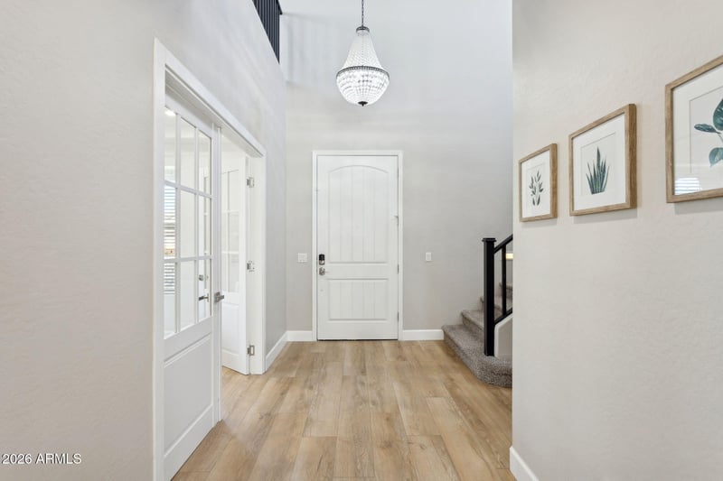 Listing details for 10723 Deawalter Ave, Mesa, AZ 85212 : Featuring a rare and highly desirable floorplan, this thoughtfully updated Eastmark residence offers a main-floor primary suite, two first-floor offices or flex rooms, and a rare four-car garage, delivering exceptional functionality and flexibility. The open-concept design is ideal for seamless indoor and outdoor living, enhanced by new French oak flooring and curated designer lighting throughout.