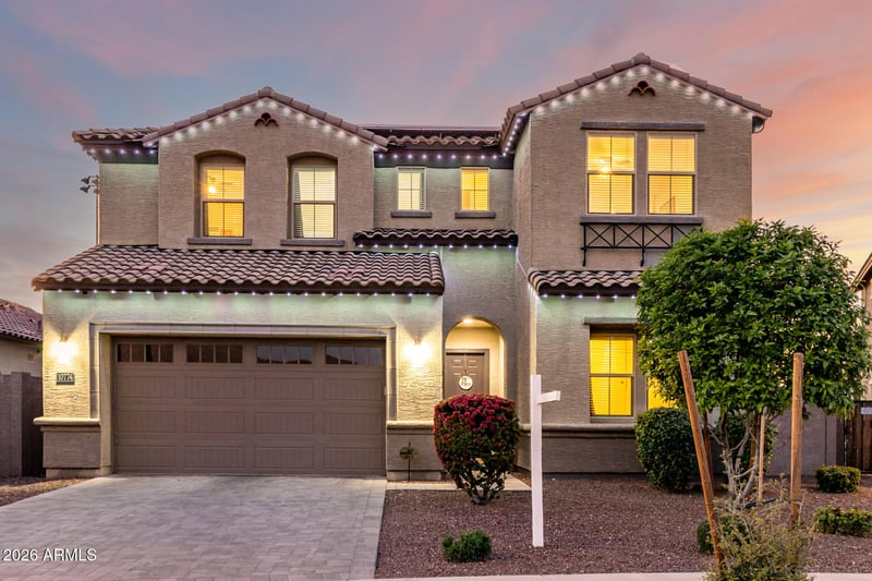 Listing details for 10774 184th Dr, Surprise, AZ 85388 : Experience the perfect blend of modern comfort and peaceful desert living in this stunning 5-bedroom home in the highly sought-after Zanjero Trails community. Framed by breathtaking views of the White Tank Mountains, this residence offers an elevated lifestyle for those who love to entertain. The heart of the home features a massive kitchen island, a morning kitchen, a walk-in pantry, and a gas oven. Outside, your private escape awaits with a sparkling pool, a relaxing jacuzzi, a covered patio, and a side patio with a built-in fire pit perfect for taking in the sunset. Additional highlights include an extended-length 3-car tandem garage, energy-efficient solar panels, and thoughtful, generous storage solutions integrated throughout the home.