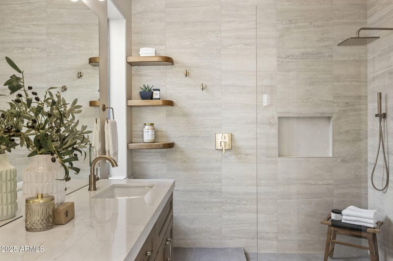 Listing details for 10796 Betony Dr, Scottsdale, AZ 85255 : Artistically fully renovated one level home with large private lot with a view in McDowell Mtn Ranch. Bright and open split floorplan, this tasteful redesign includes custom 24x48 Italian porcelain floor throughout, all new cabinetry, quartz countertops with waterfall edge, marble backsplash, upgraded GE Cafe matte white appliances, quartzite famroom fireplace with cabinets and backlit niches, enlarged primary suite with a second fireplace, sitting area and elegant floor to ceiling tiled walk-in shower with quartz dry off area. Large landscaped lot w/ combo 6x9 Play Pool/Spa w/ waterfall feature, abundant patio space for entertaining with water fountain & extensive landscaping. Castle Chase community pool is around the corner. Amazing combination of amenities and ease of ownership. McDowell Mountain Ranch is an Award Winning premier master-planned community located in North Scottsdale. Situated at the foothills of the McDowell Mountains, you can enjoy the beautiful desert serenity and have all the conveniences of living close to all of the Scottsdale amenities you love. 5 minutes to the 101 Freeway, as well as restaurants, shopping, groceries, and activities. This friendly neighborhood features 2 heated community pools/spas, playgrounds, basketball courts, tennis courts, and one of the best Pickleball leagues in town! The HOA hosts several events throughout the year for everyone to enjoy and connect with neighbors. Numerous trails, both paved & unpaved that meander throughout the community. McDowell Mountain Golf Club, designed by Phil Mickelson, with the clubhouse & restaurant, is a 2 minute drive and is open to the public. The City of Scottsdale Aquatic Center w/Lazy River & Library is close by, in addition to miles and miles of hiking, biking & equestrian trails at the landmark Gateway to the McDowell Sonoran Preserve trailhead.
