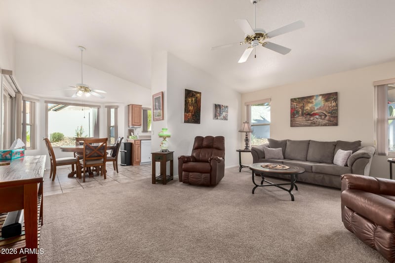 Listing details for 10806 Ventana Dr, Peoria, AZ 85373 : Beautifully updated, move-in ready home featuring two bedrooms plus a versatile den with French doors and space to add a closet. Vaulted ceilings and a plant shelf enhance the family room with plenty of natural light. The kitchen has been tastefully updated with quartz countertops, raised-panel cabinetry, stainless steel appliances and an electric range that is also stubbed for gas. A bayed dining window provides a pleasant view of the backyard Step outside to a private backyard retreat offering a generous well designed outdoor space. The finished stucco block wall, raised planter beds, and extensive paver patios, including a side patio for a polished, low-maintenance outdoor environment. A screened, enclosed patio is great for enjoying the AZ weather. Ventana Lakes offers the active adult life style with lakes and paths, clubhouses, pools and spas, fitness centers, tennis and pickleball courts, bocce ball, and a wide variety of clubs, activities, and social events.