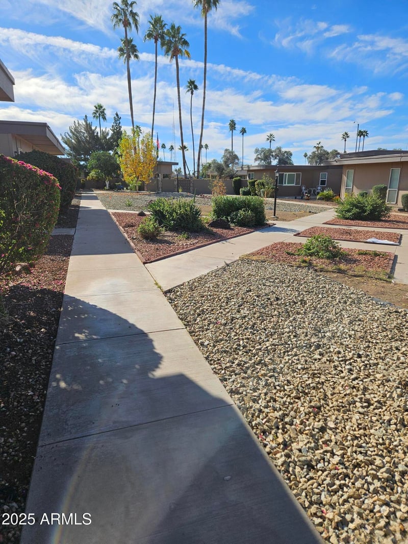 Listing details for 10814 Thunderbird Blvd, Sun City, AZ 85351 : The best home you haven't seen! Come on out and see this beautifully updated garden town home, this spacious unit features over 2100 SF of living space in the heart of Sun City! Soaring ceilings with an open floor plan, this natural light filled home features neutral paint, gorgeous wood laminate flooring (updated in 2017) and tile in all the right places, Carpet in the bedrooms. Updated (2024) classic custom kitchen with quartz counters, plentiful quality cherry cabinetry (self closing drawers), newer stainless appliances and classic back splash. The formal dining and charming living room are great areas for entertaining guests and the breakfast nook with a sliding door that opens to the private patio is perfect for enjoying your morning coffee and awesome for more casual meals! Your new owners suite features a walk-in closet with separate dressing area. Matching cabinetry and counters (bathrooms updated in 2017) are featured throughout this home. Guest room features a walk-in closet and offers its own backyard access! Enjoy relaxing in your completely private garden (complete with fruit tree!) with a large (extended) covered patio. Owned Solar System with backup battery (2018) ensures energy efficiency and savings and makes your electric bill almost non-existent! Owner recently received a rebate check from APS of over $300! Home recently appraised above value. New courtyard under construction.