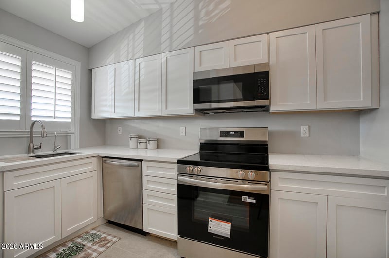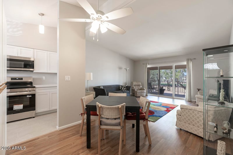 Listing details for 10820 Fairway Ct #218, Sun City, AZ 85351 : Move in Ready! Remodeled and spacious 2-bedroom, 2-bath end-unit apartment with stunning golf course views. This quiet retreat features vaulted ceilings, an expansive living room, and a large balcony perfect for morning coffee or evening sunsets. The beautifully updated kitchen includes brand-new quartz countertops, new cabinetry, new refrigerator, oven, dishwasher, microwave, sink, faucet, and disposal. New tile flooring enhances both the kitchen and bathrooms, and the primary bath showcases a separate built in vanity and a new shower door. The oversized primary bedroom easily accommodates a king bed with a sitting area, and both bedrooms offer generously sized closets. Designed for comfortable living and entertaining, there's plenty of room for family get-togethers and card games with neighbors. Fresh interior and exterior paint completed in 2025 adds to the move-in-ready appeal. Additional highlights include a private storage locker downstairs and full access to all Sun City recreation centers. Ideally located within walking distance to shopping and dining, this home offers the perfect blend of convenience, comfort, and community.