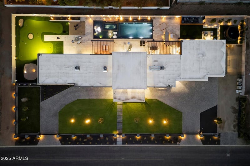 The nine-hole putting green, large play area, and sunning deck create an atmosphere of leisure and recreation, while AstroTurf and desert landscaping ensure effortless maintenance. Gather around the grand firepit as night falls for warmth and ambiance under the stars.