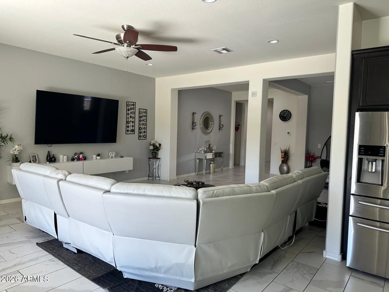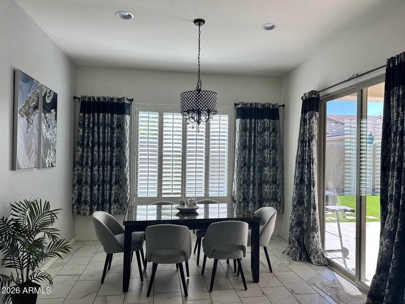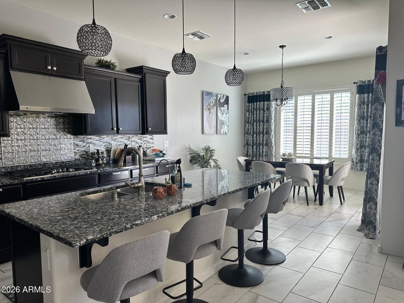 Listing details for 1083 Holland Park Dr, Gilbert, AZ 85297 : This beautiful single story 4 bedroom (plus Den, that could be bedroom 5) North-Facing Home in Kensington Estates is adjacent to the Community Park. Featuring an open floor plan with 10-foot ceilings and numerous upgrades throughout. The kitchen opens to the living and dining areas, perfect for everyday living and entertaining. Three-panel collapsible sliding glass doors create an ideal indoor-outdoor experience to enjoy your finished backyard. Plantation shutters enhance every room, adding both style and privacy. Upgraded tile flooring throughout, with modern vinyl flooring in the bedrooms—no carpet anywhere, Additional upgrades include water softner and R/O systems. Ideal location in Chandler School District, w/easy access to Loop 202, San Tan Village, Shopping, and so much more!