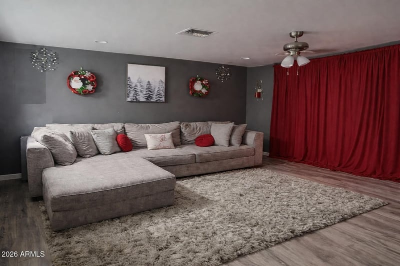 Listing details for 10836 114th Ave, Youngtown, AZ 85363 : Value-add investment opportunity in Youngtown with a functional layout and solid improvements already in place. The home features an open-concept living and kitchen area with updated flooring, ample cabinet space, and good natural light throughout the main living areas. Bedrooms are well-proportioned, offering flexible use for future occupants or resale. Bathroom 1 has been updated, while Bathroom 2 is unfinished, presenting a clear opportunity to add value and customize the space. The exterior offers low-maintenance desert landscaping and a practical footprint suitable for rental or resale strategies. Ideal for investors seeking a property with upside potential in a convenient location near shopping, dining, and major routes.