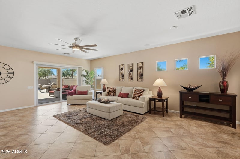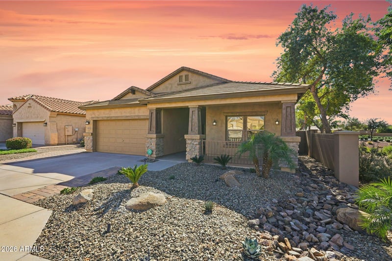 Listing details for 10853 Sebring Ave, Mesa, AZ 85212 : Nestled in Bella Via, this home flows effortlessly and is ideal as a move-in-ready home or a lock-and-leave vacation retreat. The main living area is anchored by a striking stone feature wall with an electric fireplace—perfect for gathering, relaxing, or entertaining friends and family. The primary suite serves as a private sanctuary, featuring a beautifully remodeled walk-in shower for ultimate comfort, while the bedrooms provide flexible space that can easily function as a home office or guest rooms. Outside, a custom heated pool with gas fire pots, a tranquil water feature, and a travertine deck create a low-maintenance, resort-style escape. Neighboring a greenbelt, the property offers rare privacy and a serene backdrop, perfect for taking in beautiful Arizona sunsets.