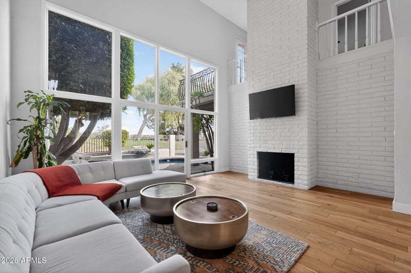 Listing details for 10897 78th St, Scottsdale, AZ 85260 : What a sanctuary! This beautiful townhome awaits you in the sought-after Scottsdale Country Club. Discover the abundance of light and warmth of the inviting interior, featuring engineered wood flooring, soaring vaulted ceilings to enhance the airy feel, a wet bar perfect for entertaining, a floor-to-ceiling brick fireplace for cozy winter evenings, and a soothing palette that will make you want to stay. The impeccable kitchen is ready for your culinary adventures, equipped with shaker-style cabinets adorned with crown molding, tile backsplash, quartz countertops, and stainless-steel essentials. The serene main suite boasts a closet, a spa-like bathroom with double sinks and a separate shower & tub, and a private exit. The cozy loft is perfect for a reading nook, a TV ar or an office. Enjoy your morning coffee on the balcony, accompanied by stunning golf course and mountain views. The backyard hosts a covered patio, well-laid pavers, a relaxing landscape, and a private sparkling pool for a refreshing time! This home is a dream! Don't miss it!