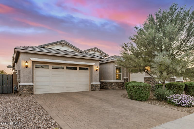 Listing details for 10901 Tarragon Ave, Mesa, AZ 85212 : Located on an interior north/south lot siding to a common area in the Bella Via community with a private courtyard entry, this spacious 4-bedroom, 2.5-bath East Mesa home offers privacy, modern upgrades, and a highly functional layout. The great-room split floor plan includes a formal dining room, 10-foot ceilings, extensive 12'' x 24'' tile flooring, accent paint, and surround sound with in-ceiling speakers. The gourmet kitchen is designed for entertaining and everyday living, featuring a large island with breakfast bar, quartz countertops, brick backsplash, 42'' white cabinets with crown molding and hardware, pantry storage, and stainless-steel appliances, including a gas cooktop, built-in oven, and built-in microwave. Additional upgrades include soft water and reverse osmosis systems. The spacious owner's suite features 10-foot ceilings and an en-suite bathroom with dual sinks and a tiled walk-in shower. The secondary bedrooms are generously sized, with three bedrooms featuring walk-in closets, providing excellent storage and flexibility. Step outside to a private backyard retreat featuring a covered patio with ceiling fan, heated PebbleTec pool with Baja step and in-ground cleaning system, synthetic grass area, and lush landscaping--perfect for relaxing or entertaining. Additional highlights include a 3-car garage with a 4-foot extension and service door. The Bella Via master-planned community offers parks, playgrounds, sports courts, and a dog park, all in a prime East Mesa location close to shopping, dining, and convenient access to the US-60 and Loop 202.