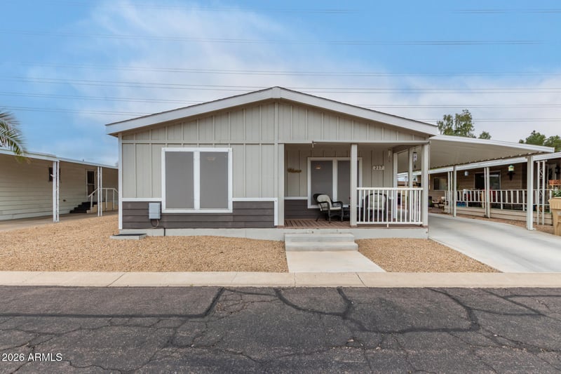 Listing details for 10960 67th Ave #217, Glendale, AZ 85304 : Beautiful 2019-builthome in the gated 55+ Casa del Sol East community! This 2 bedroom, 2 bath residence offers 1,173 sq ft of modern, move-in-ready living space and stands out as one of the newer homes in the neighborhood. The open-concept layout features a spacious kitchen that flows into the living and dining areas, ideal for everyday living and entertaining.