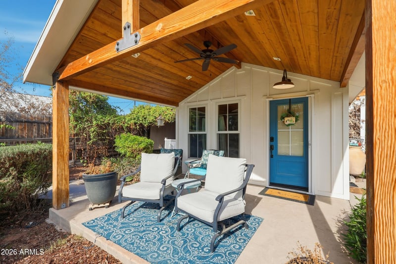 Listing details for 110 Bruce Ave, Gilbert, AZ 85233 : Located in the heart of Downtown Gilbert, the historic Cozy Cottage offers a rare opportunity to own in one of the East Valley's most walkable and sought after neighborhoods. Thoughtfully updated while preserving its character, the home blends vintage charm with modern convenience. The interior includes a comfortable bedroom, a bonus den/2nd bedroom ideal for an office or guest space, and a well appointed bathroom. A full kitchen and in home laundry support everyday living, while the front porch and yard provide space to relax. Steps from dining, shopping, and events, the cottage is a guest favorite which has provided 94% occupancy in 2025 for available dates, and strong rental revenue. The Cozy Cottage is offered fully furnished and can be your next home or investment property in Gilbert