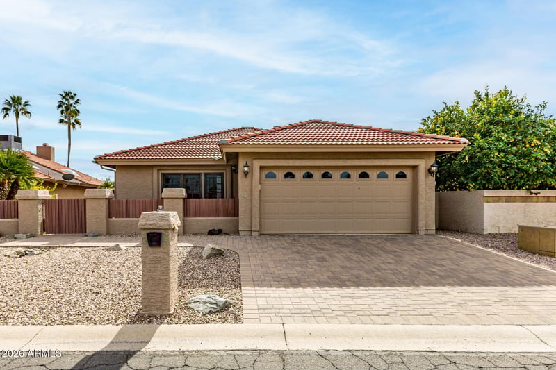 Listing details for 11001 Chestnut Dr, Sun Lakes, AZ 85248 : RARE GOLF COURSE VIEWS IN FRONT & BACK of this spacious 3 BDRM 2 BATH home located inside the private, GATED Palo Verde Country Club. This KACHINA FLOOR PLAN is perfectly positioned w/ideal NORTH-SOUTH EXPOSURE, bringing in balanced natural light thru/out the day. VAULTED CEILINGS create an open, spacious feel from the moment you enter, and NEWER RENEWAL BY ANDERSEN SLIDERS enhance the indoor-outdoor flow. The WRAP AROUND PAVERED PATIO & DRIVEWAY elevate the curb appeal and provide multiple outdoor spaces to enjoy the BEAUTIFUL VIEWS + A NEWER ROOF adds peace of mind, & the EPOXY GARAGE offers a clean, finished look. Golf course positioning like this, w/ VIEWS IN EITHER DIRECTION, is a standout opportunity in Palo Verde. Enjoy the carefree lifestyle of a 40 & OVER ACTIVE ADULT COMMUNITY!