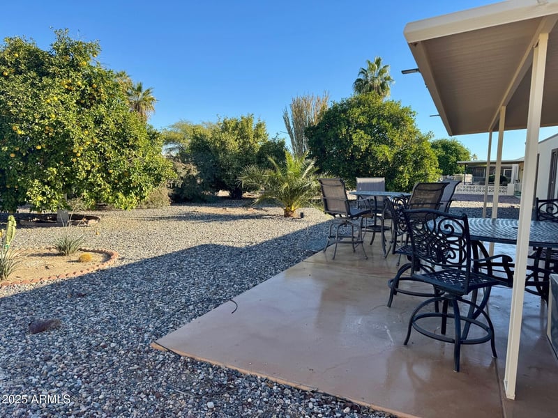 Listing details for 11022 Crestbrook Dr, Sun City, AZ 85351 : This professionally designed & immaculately maintained 2-bedroom, 2-bath home boasts approximately 1,600 square feet of living space with an extended garage/workshop on a large private lot. The interior features custom curtains and blinds & new interior paint applied in 2021. This home has been tastefully updated throughout, including a new garage door, custom front lighting, and a custom front door and interior door. The primary bedroom and bath have been thoughtfully designed with dual sinks & a tile and stone walk-in shower. The additional bedroom has a murphy bed and a second updated bathroom for guests or family members. The backyard is a true oasis, featuring a stamped concrete covered patio that is perfect for outdoor relaxation and entertainment. The property also includes The property also includes several fruit trees, including an AZ Sweet Orange tree, pomegranate tree, pink grapefruit tree, and a variegated pink lemon tree, adding to the lush and natural ambiance. For added security and convenience, the home is equipped with an owned security system. Other updates include stainless-steel appliances, recessed kitchen lighting, a new A/C unit installed in 2022 and a new roof in 2021 ensuring energy-efficiency and well-maintained comfort. This property offers a wonderful opportunity to enjoy a comfortable and updated living experience located near stores, hospitals and much, much more. Sun City has 7 recreation centers that include golf, recreation, swimming, sports, arts/crafts and numerous clubs to keep you engaged year round. Welcome Home!