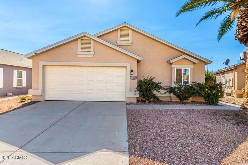 Listing details for 11025 Seldon Ln, Peoria, AZ 85345 : Welcome to Country Meadows, a perfectly located neighborhood off Northern Pkwy, conveniently situated between the 303 and the 101. NO HOA, easy access for commuters and quick access to a wide range of amenities. Step into the inviting living room, featuring vaulted ceilings and ample natural light. The eat-in kitchen boasts stainless steel appliances and a peninsula with a breakfast bar, perfect for casual dining. Just off the kitchen, an oversized storage room with floor-to-ceiling cabinets provides storage space for all your needs. The split floorplan offers a Primary ensuite featuring double sinks and a spacious walk-in closet. Built in cabinetry in the 2 car garage, covered back patio and low maintenance yards! First time homebuyers, investors or seasonal homeowners - this One checks all the boxes!