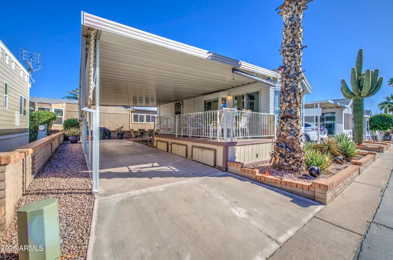 Listing details for 111 Greenfield Rd #408, Mesa, AZ 85206 : Cute as can be describes this cottage. Fully furnished and ready to move into. Seller added a large 9'deck. Room for 2 cars and a golf cart. Floors replaced 2022. Inside walls & cabinets painted. Vaulted ceilings. Water heater replaced in 2014. Seller has blueprints for an Arizona Room. Washer & dryer are accessed from the patio (water heater was removed so only cold water). Tub/shower in bath with pocket doors to bedroom and hall. Two large closets in bedroom. Pavers in back to give additional space for outside items. Community offers swimming pool and spa, many activities and close to golf, doctors and Superstition Springs Mall. Easy access to Hwys 60 & 202. Home being sold ''as-is''.